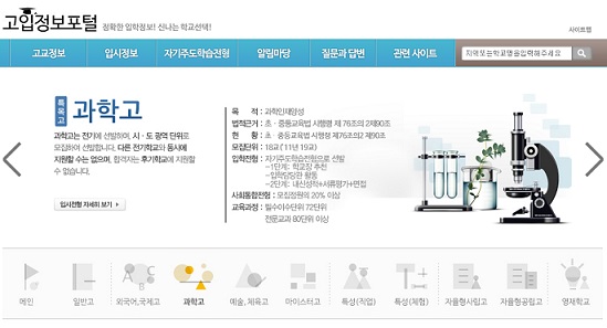 [베리타스알파=한장희 기자] 전국의 고등학교 정보가 수록된 고입정보포털서비스가 특목고와 자사고의 정보를 보강하는 등 전면 개편됐지만 지형을 더듬을 수는 있어도 실질정보를 얻는 측면에선 여전히 아쉽다는 평가다.