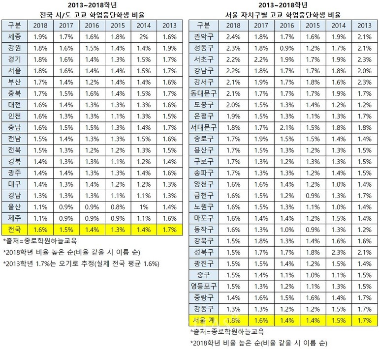 자퇴이후 검정고시는 효과적인 대입전략일까. 수험생/학부모 사이에서는 수능/논술을 준비하다면, 자퇴 후 사교육을 통한 대비방법이 더 효율적이라는 여론이 형성된 것으로 파악된다. 성과만 본다면, 학교를 나와 정시/논술 준비에만 매진하는 것이 공부시간이나 학습량 확보에 유리하다는 관점에서다. 정시확대의 확정과 학생부 비교과 축소 등 수시보다는 정시에 비중이 커지고 있는 점에서도 영향이 있을 것으로 보인다. 또한 학생부 상위 내신등급 획득이 어려운 강남8학군의 자퇴생이 늘어나면서, 교육계는 학업중단학생 수치의 대부분을 자퇴 후 정시/논술 준비에 주력하는 학생들로 파악하고 있다. 실제로 한 입시기관이 지난해 7월에 공개한 2018학년 기준 자료에 따르면, 교육특구라 불리는 서초구와 강남구의 학업중단비율이 각 2.2%로 톱5 내에 자리했다. 서울 평균 1.8%보다 0.4%p 높은 수준이다. 교육특구뿐 아니라 서울의 모든 자치구에서 학업중단학생서울 평균 학업중단학생의 비율도 2017학년 대비 0.2%p 상승한 수치다.