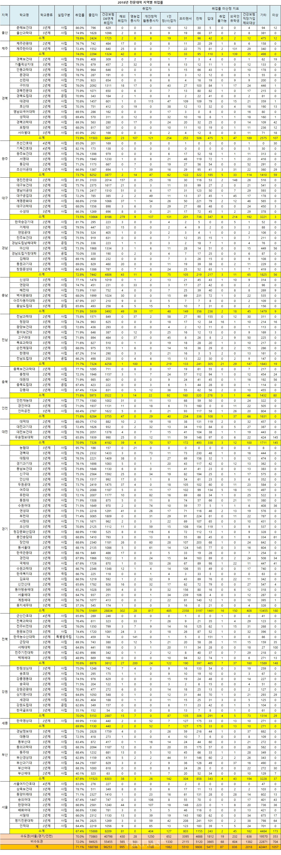대학알리미가 공시한 2019 ‘졸업생의 취업현황’은 2018년 12월31일 기준이다. 2017년 8월, 2018년 2월 졸업자가 조사 대상이다.