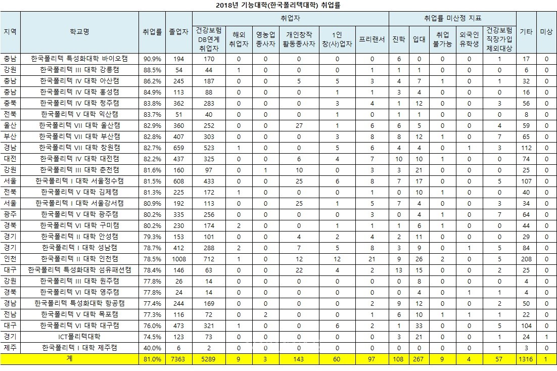 <한국폴리텍대학.. 캠퍼스별 취업률>