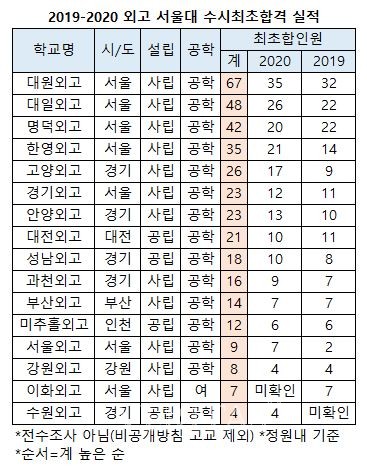 - 외고.. 2020서울대 수시최초합 톱10, 외고 5개교 포함