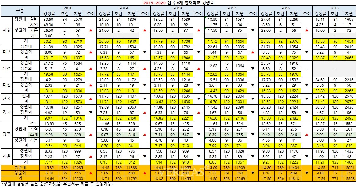 <지난해 경쟁률 8개교 15.32대1.. 세종영재 ‘최고’>