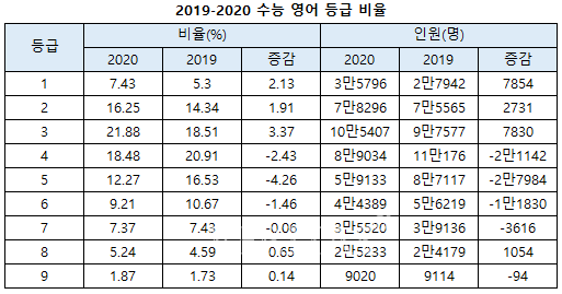 <2020수능 영어 1등급 비율 7.43%.. ‘전년대비 상승’>