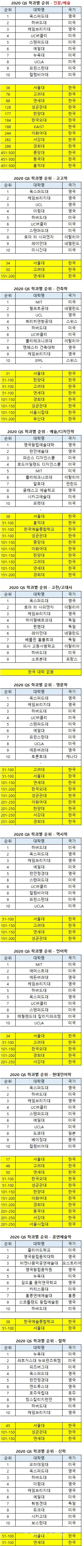 세계대학을 살펴보면 올해 미국 대학이 휩쓴 모습이다. 1위의 옥스퍼드대, 3위의 케임브리지대(영국)을 제외하면 모두 미국대학이 차지했다. 옥스퍼드대(영국) 하버드대(미국) 케임브리지대(영국) UC버클리(미국) 스탠퍼드대(미국) 예일대(미국) 뉴욕대(미국) UCLA(미국) 프린스턴대(미국) 컬럼비아대(미국) 순으로 톱10이었다.
