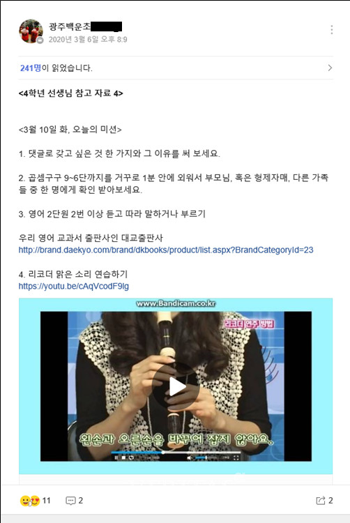 활용 동영상 제작에 참여한 일동초 임성열 교사는 “국가적 위기 상황에서 학생들과 동료교사에게 도움을 줄 수 있는 기회가 주어져 기쁜 마음으로 참여하게 되었다”며 “온라인이 아닌 교실에서 학생들을 만날 날이 빨리 돌아오길 바라고 있다”고 말했다.