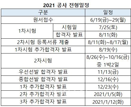 원서접수 기간은 6월19일부터 29일까지다. 1차시험을 7월25일 실시한 후 1차합격자를 8월11일 발표할 예정이다. 1차시험 합격자는 2차시험 등록서류를 8월11일부터 8월17일까지 제출해야 한다. 1차시험 추가합격자는 8월19일 발표할 예정이다.