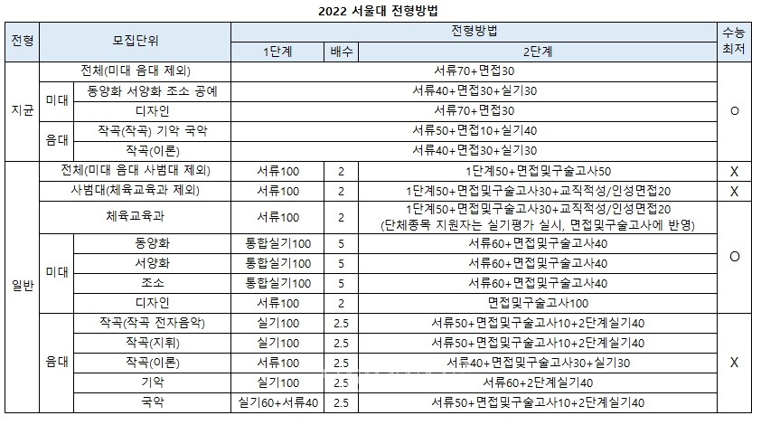 서울대는 이 같은 내용을 담은 ‘2022 신입학생 입학전형 주요사항’을 29일 발표했다. 서울대는 전형계획 발표 시점에 ‘신입학생 입학전형 주요사항’을 발표하고 모집요강 발표 전 ‘대학입학전형’을 한 차례 더 발표한다. 주요사항에서는 기본적인 전형내용과 변경사항 등을 짚고 있다.