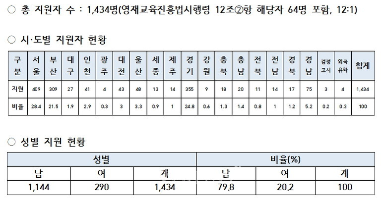 [베리타스알파=김하연 기자] 한국과학영재학교(KSA, 교장 정윤)는 2021학년도 신입생 원서 접수 결과를 발표하였다고 6일 밝혔다. 2021학년도 신입생은 120명 내외 선발(정원 외 선발은 정원의 7% 이내)에 1,434명(영재교육진흥법시행령 12조 ②항 해당자 64명 포함)이 지원하여 12:1의 경쟁률을 보였다.