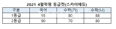 [베리타스알파=권수진 기자] 스카이에듀가 21일 실시한 2020 4월 모의고사 예상 등급컷을 5시45분 기준 국95점 수(가)80점 수(나)88점으로 예측했다.