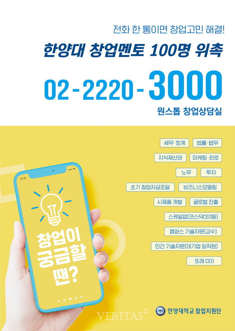 [베리타스알파=김하연 기자] 한양대(총장 김우승)가 국내외 창업전문가 100명을 위촉, 예비창업자 및 초기 스타트업의 스케일업(Scale-up)을 위한 전(全)방위적 멘토링 지원에 나선다.