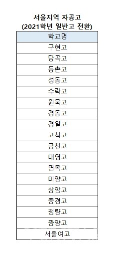 [베리타스알파=권수진 기자] 서울지역 18개 자율형공립고(자공고)가 올해 중3이 고입을 실시하는 2021학년부터 일반고로 일괄 전환된다. 자공고는 공립고 학교운영 등에 자율성/책무성을 부여하고 교육과정 및 프로그램을 특성화/다양화해 일반계 공립고의 교육력을 제고한다는 취지로 도입됐다.