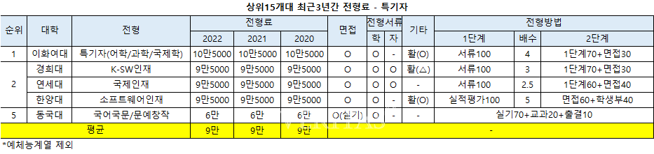 <특기자.. 심층면접 특성 ‘전형료 최고’>