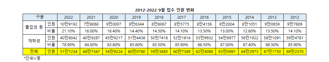 9월모평 51만7234명 응시.. 졸업생 10만9192명, 재학생 40만8042명