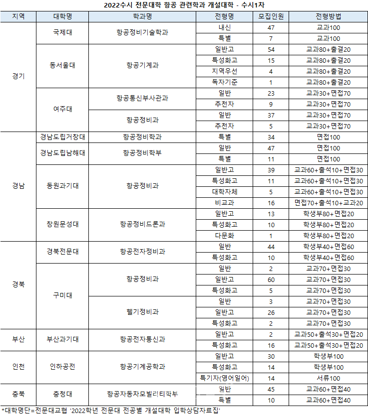 - 경북전문대 항공전자정비과 일반/특성화고 54명