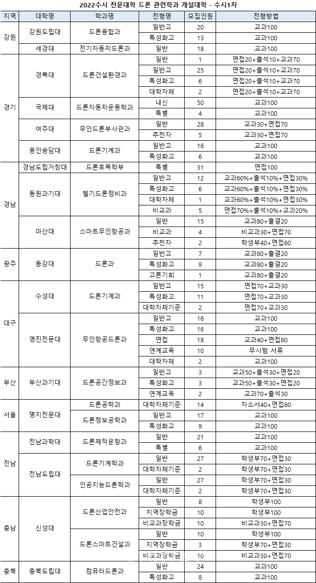 - 용인송담대 드론기계과 일반고/특성화고 22명