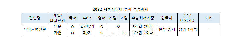 [베리타스알파=유다원 기자] 서울시립대는 올해 일반교과로 운영되던 학생부교과전형을 지역균형선발전형으로 변경했다. 학교장추천제로 운영되며 고교별 추천인원은 최대4명이다. 2022수시에서 198명의 신입생을 선발한다.