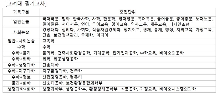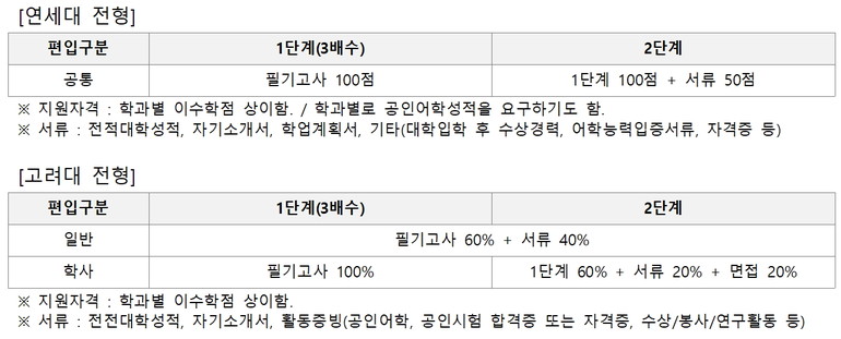 <연고대 편입전형.. 인문계열 “논술” 자연계열 “전공과목”>