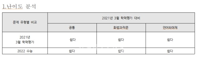 [베리타스알파=권수진 기자] 24일 시행한 2023 3월학평(2022년 3월 모의고사)의 국어 영역은 지난해 수능보다는 쉽게 출제됐다는 분석이 나왔다. 유웨이의 분석에 의하면 영역별 지문 구성 방식이 2022수능과 유사한 형태였다. 다만 문학에서 수필과 복합 지문을 현대시에서 고전시가로 대체해 출제했다. EBS 수능 특강 연계율은 체감할 수 없었다. 이만기 유웨이 교육평가연구소장은 “문학보다는 독서 지문이 어려웠다”며 “화법과작문은 작년 수능에 비해 확실히 쉽게 출제됐다”고 설명했다.