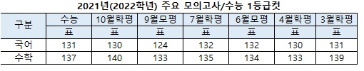 <'통합형 수능 체제' 도입 첫 해.. 작년 4월학평 표점 1등급컷 국 130점 수 133점>