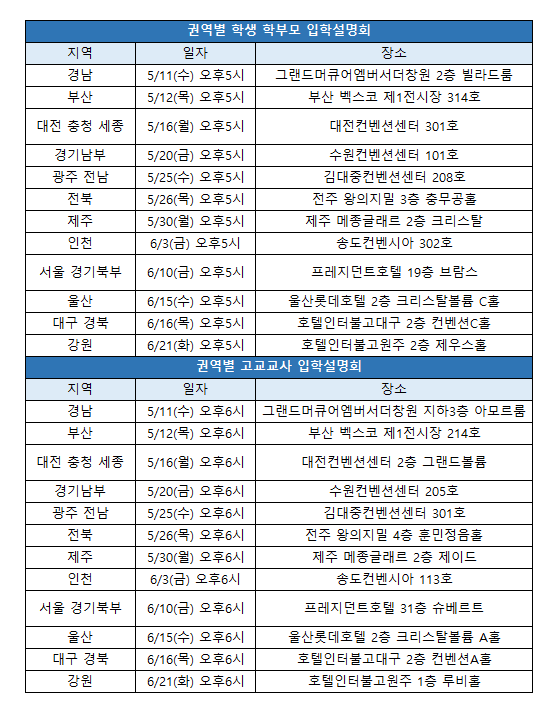 고교방문 내달9일, 권역별 설명회 내달 11일 개시.. 21일부터 선착순 신청