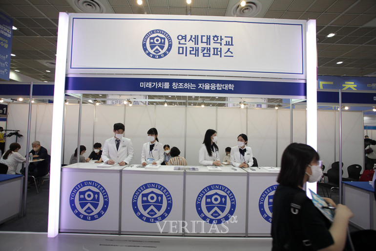 [베리타스알파=신현지 기자] 연세대(미래)는 20일 '미래가치를 창조하는 자율융합대학'을 슬로건으로 걸고 부스를 운영하고 있다. 2023수시박람회는 20일부터 23일까지 나흘간 서울 삼성동 코엑스 1층 A홀에서 진행된다.