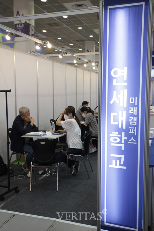 [베리타스알파=신현지 기자] 20일 연세대(미래)부스에서 학생들이 수시 입학상담을 받고 있다. 2023수시박람회는 20일부터 23일까지 나흘간 서울 삼성동 코엑스 1층 A홀에서 진행된다.