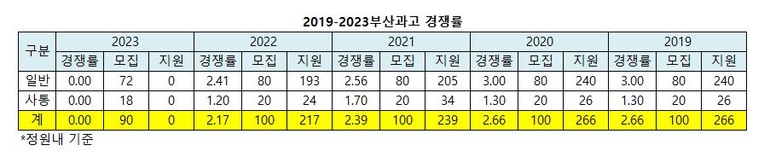 [베리타스알파=조혜연 기자] 부산과고의 2023학년 경쟁률이 상승했다. 26일 부산과고에 따르면 2023 신입생 모집 원서접수 결과 최종 경쟁률은 2.67대1로 나타났다. 정원내 90명 모집에 240명이 지원한 결과다. 지난해 경쟁률은 2.17대1이다. 일반은 작년보다 지원자가 21명 늘어 2.97대1로 상승했고, 사회통합은 2명 늘어 1.44대1로 상승했다. 작년보다 모집인원을 10명 축소한 것도 경쟁률 상승에 반영된 것으로 보인다.