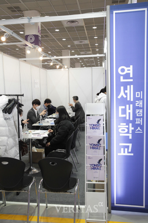 [베리타스알파=조혜연 기자] 연세대 미래캠이 2023정시박람회에서 1대1로 상담을 진행하고 있다. 2023정시박람회는 15일부터 17일까지 사흘간 서울 삼성동 코엑스 1층 A홀에서 진행된다.