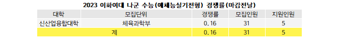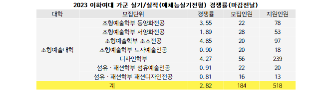 이화여대의 2023정시 원서접수는 1월2일 오후 6시까지다. 서류는 3일까지 제출하면 된다. 단계별 전형을 실시하는 조형예술과 체육과학의 1단계 합격자는 1월5일에 발표한다. 실기고사는 조형예술 11일, 체육과학 15일 치른다. 음대는 16일부터 18일 중 진행된다.