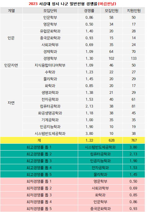 최저 영문학부 0.5대1, 최고 시스템반도체공 3.8대1