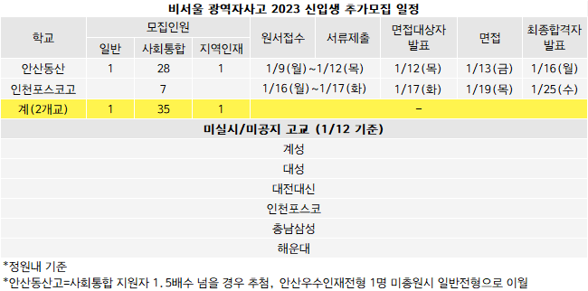 <비서울 광역자사고 추가모집.. 안산동산 인천포스코 2개교>