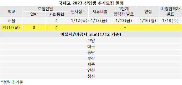 <국제고 추가모집.. 서울 1개교 사통 4명>