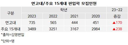 - [재수 반수 대신 제3의 길 편입 14] 2023편입 50개대 1만708명 '확대'.. 연고대 735명 '자연계열 확대'