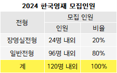 정원내 120명 내외 모집.. 일반 96명 장영실 24명