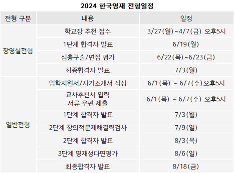 <2024 장영실전형 3월27일부터 접수.. 일반전형 6월1일부터>
