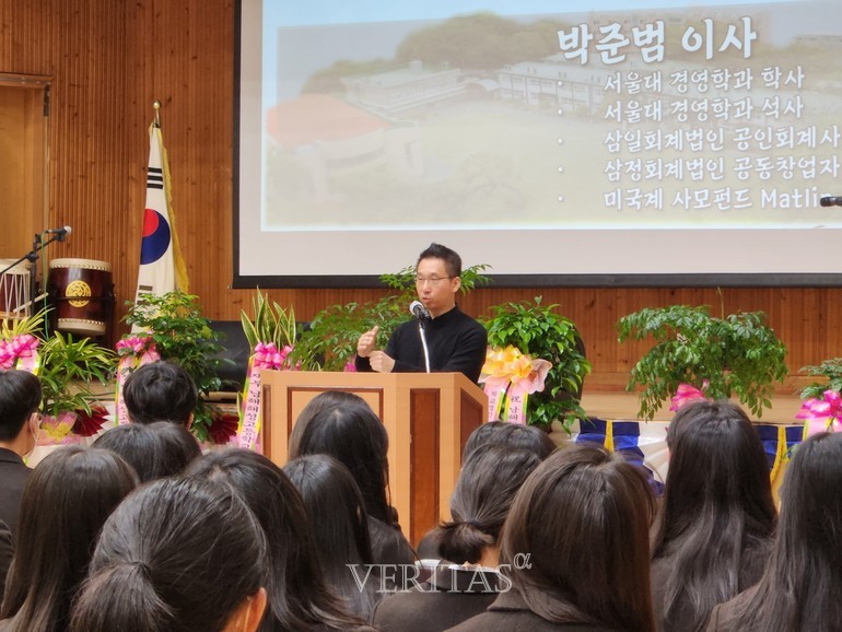 [베리타스알파=김해찬 기자] 전국단위 자율학교 남해해성고가 17일 열린 해성 멘토링 결연식에서 '축복과 감사'를 주제로 박준범 CEO의 특강이 진행됐다고 최근 밝혔다. 남해해성고의 멘토링 결연식은 스승과 제자, 선배와 후배가 서로를 배려하고 챙기는 가족이 된 것을 기념하는 본교의 특색 활동이다. 박준범 CEO는 삼정회계법인의 공동창업자로 알려져있다.