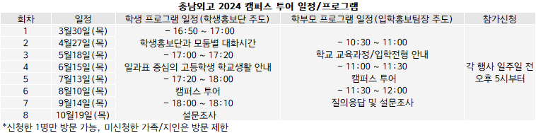 중학생 투어 선착순 35명..학부모 투어 선착순 30명