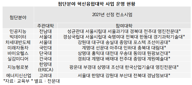 지난해 8개 분야 주관대학 ‘서울대 고려대 건국대 단국대 한양대ERICA 전남대 등’