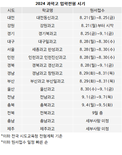 <전기 ‘광역단위 모집’ 과고.. 대전동신 강원 8월21일부터>