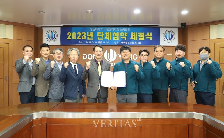 [베리타스알파=박원석 기자] 동양대는 10일 동양대 노동조합과 노사 양측 교섭위원 12명이 참석한 가운데 단체협약을 체결했다고 17일 밝혔다. 동양대는 작년 9월6일 노조로부터 단체교섭을 요구받은 이후 시종일관 상호 신의를 바탕으로 총 8차에 걸친 본 교섭/실무교섭과 수시 간담회 등을 거친 결과 원만하게 최종 협약을 체결하게 됐다. 협약안에는 조합활동 보장, 근무 시간 면제, 노동조건, 임금/수당과 후생 복지, 안전/재해보상 등이 포함됐다.