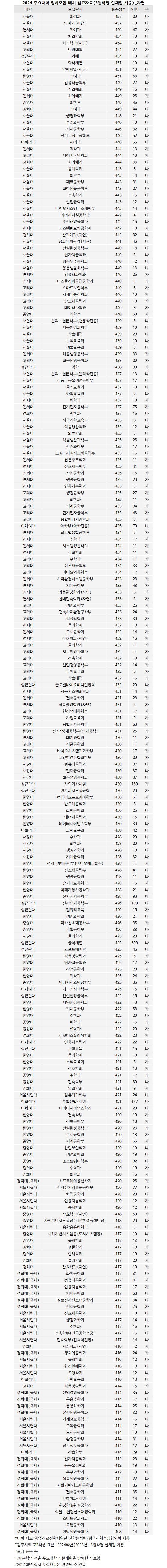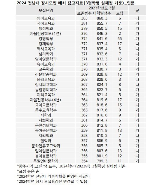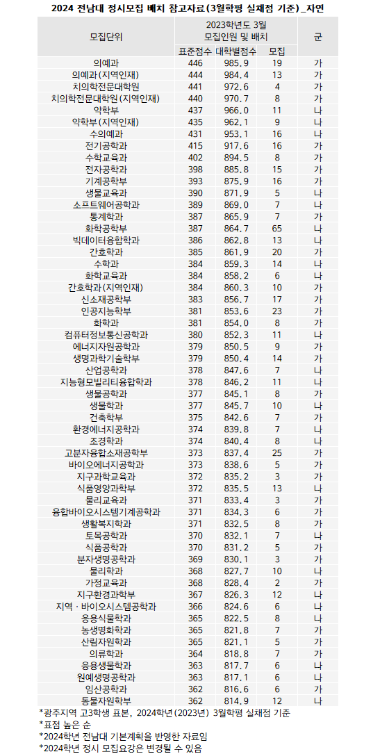 <전남대 표점.. 전남대 의예 446점 ‘최고’>