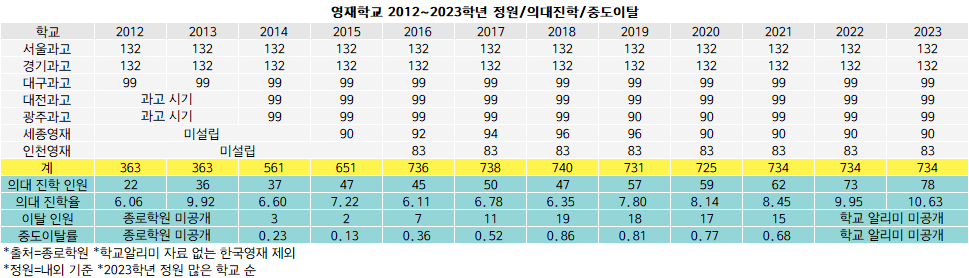 <의대 제재로 중도이탈이 심각하다고?.. 상승세인 영재학교 의대 진학률로 의대 제재의 실효성이 떨어진다는 게 명백한데>
