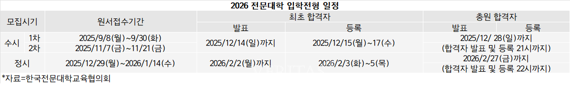 [베리타스알파=권수진 기자] 현 고1이 치르게 될 2026 전문대 입시에서 학교폭력 조치사항이 의무 반영된다. 4월 교육부가 발표한 ‘학교폭력 근절 종합대책’에 따른 조치다. 한국전문대학교육협의회(이하 전문대교협)는 이 같은 내용을 담은 ‘2026 전문대학 입학 전형 기본사항’을 7일 발표했다.