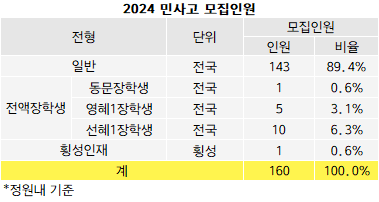 <민사고 2024학년 160명 선발.. 일반전형 143명>