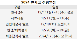 민사고의 올해 온라인 원서접수는 12월11일부터 13일 정오까지 진행된다. 서류 우편 제출 역시 13일까지 마무리해야 한다. 13일 우체국 소인까지 제출이 유효하다. 면접 대상자는 12월19일 오전10시에 민사고 홈페이지에 공개한다. 면접과 체력검사는 12월26일부터 29일까지 실시하며, 최종 합격자는 내년 1월3일 오후5시에 발표한다.