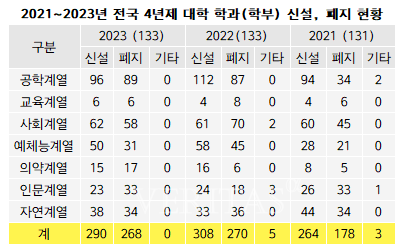 문제는 인기 학과 쏠림 현상이 뚜렷하다는 것이다. 실제로 서동용 의원이 4년제 대학 입학 정원을 분석한 결과 10년 동안 4년제 대학 입학 정원은 총 3만5363명(-10.2%) 감소했다. 사회계열이 1만9944명(-22.3%)으로 감소폭이 가장 크며 인문계열 9042명(-20.1%), 자연계열 7029명(-16.1%), 교육계열 2423명(-12.1%), 예체능계열 4682명(-11%) 순이다.
