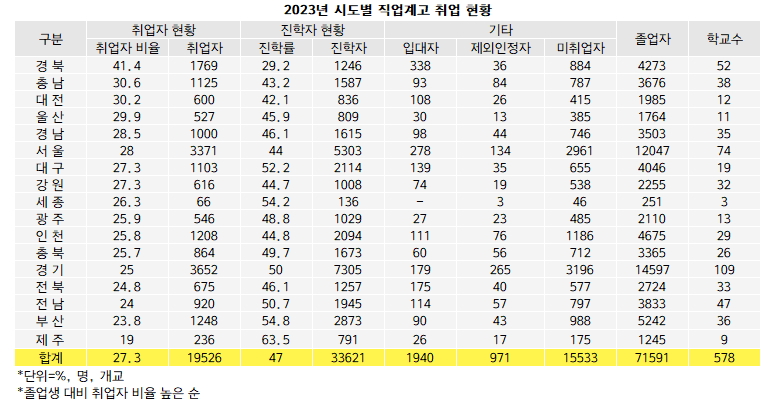 <직업계고 실질 취업 비율 ‘27.3%’.. 진학률 ‘상승’>