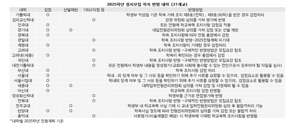 2025 학폭 ‘선제적’ 반영 서울대 등 21개교