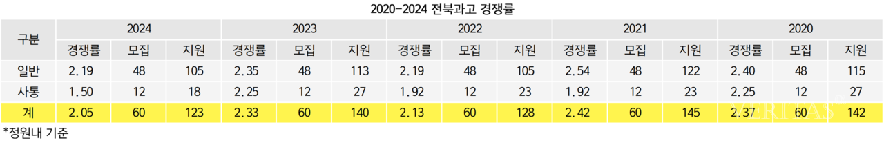 <전북과고 2024 경쟁률 2.05대1 ‘하락’>