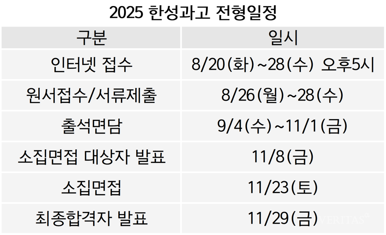 한성과고는 올해 입학전형을 상세하게 설명하기 위해 입학설명회를 진행한다. 일정은 6월20일 오후6시이며, 한성과고 체육관에서 실시할 예정이다. 한성과고 입학에 관심있는 중학교 학생과 보호자, 교사 모두를 대상으로 한다. 별도의 사전 예약없이 참가할 수 있으며, 당일 선착순으로 자료를 받고 설명회에 입장할 수 있다.